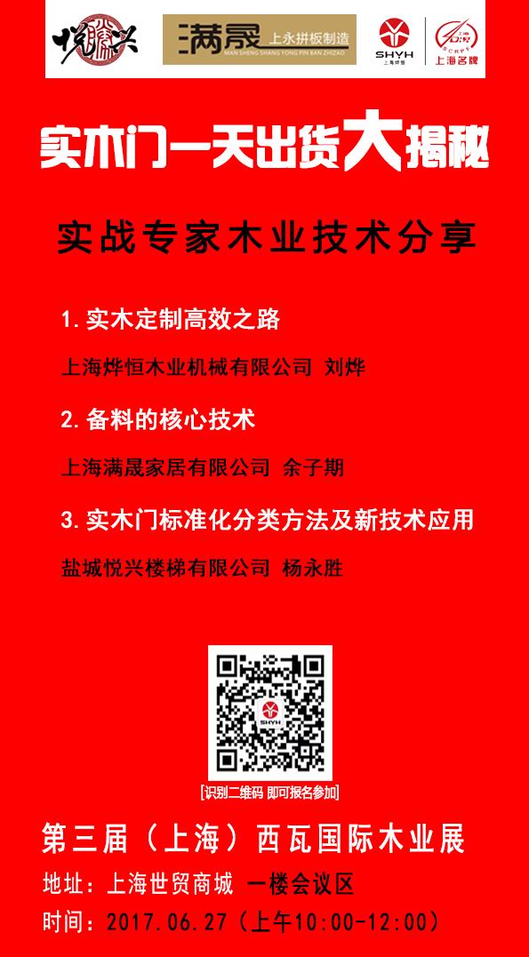 值得一提的是,“3倍成員”鹽城悅興樓梯有限公司、上海滿晟家居有限公司以及上海燁恒木業機械有限公司將在展會上就“實木門一天出貨工藝大揭秘”主題進行講解。搜門網作為此次活動的特邀媒體也將全程進行跟蹤報道。本次會議將圍繞實木定制高效之路、備料的核心技術、實木門標準化及分類方法及新技術的應用等話題,聚焦當前木門行業交貨時間長、售后服務工作頻繁、環保困擾等諸多難點,掏干貨,戳痛點,實戰專家現場與觀眾進行面對面木業技術大分享,力求給現場觀眾帶來一場聽覺盛宴。