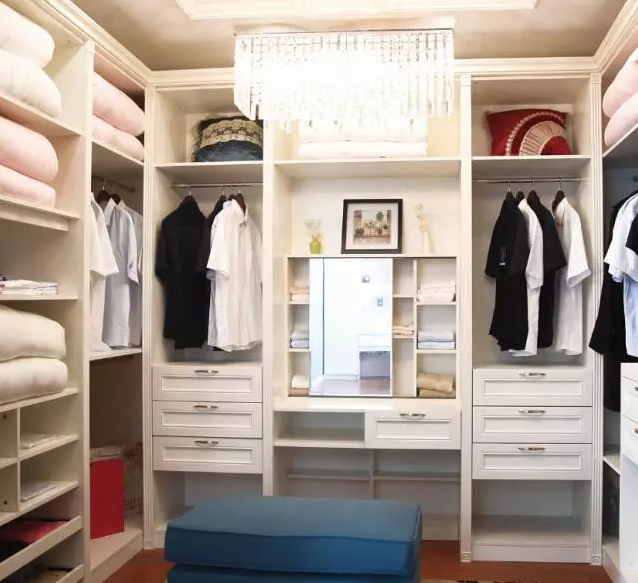 定制衣帽間,整面衣柜都依著墻面向上發展,幫您裝下所有的煩惱,更完美的功能分區,物品秩序排列,實現完美收納!還省了挑壁紙的錢和時間呢!