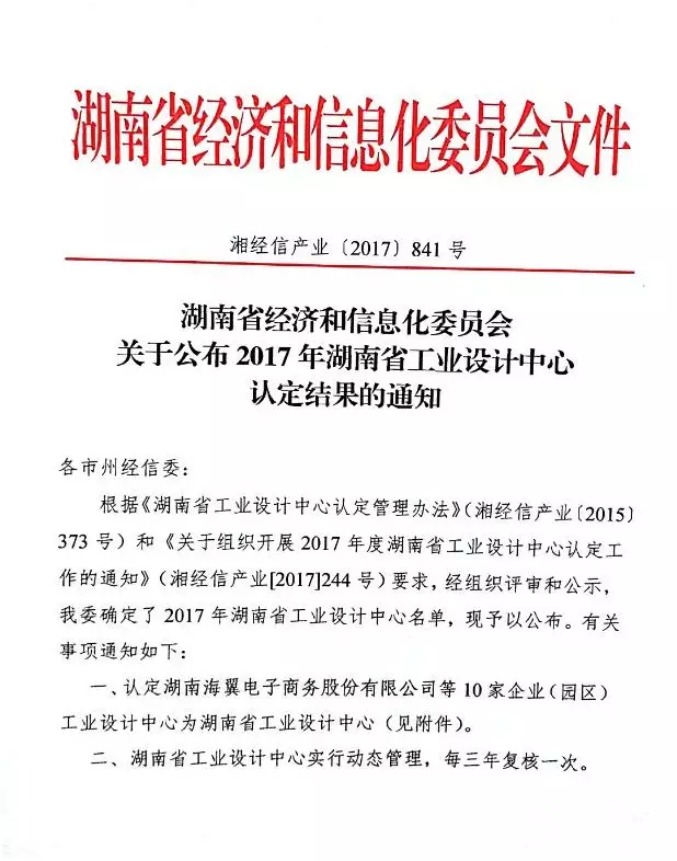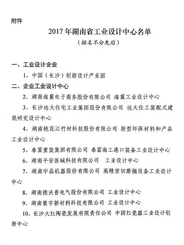 近日,湖南省經信委2017年度省級工業設計中心名單公示,我公司香港寰宇集團旗下湖南寰宇新材料科技有限公司成功入選。