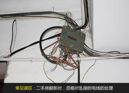 常見誤區:上手業主的插座太少,隨意接線加裝插座。有常識的人都會知道,家中電線不可亂接,這往往會隱藏著安全隱患。在二手房翻新時,許多人并不檢查電線串接是否正確,忽略了亂接電線的情況。