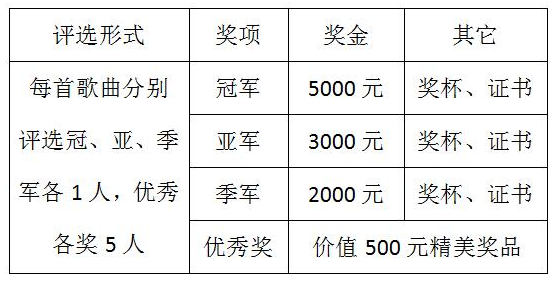 2、每首歌曲在復賽中分別評選出冠、亞、季軍及優秀獎并現場頒獎;
