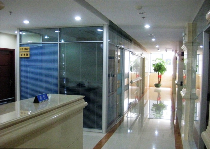 南寧兆拓建材辦公隔斷使用鋁合金框架為裝飾和固定材料,將整塊玻璃(單層或雙層)安裝在鋁合金框架內,形成整體隔墻的效果。其特點是空透、明快,隔音,采光,而且在光的作用下色彩有變化,可增強裝飾效果。