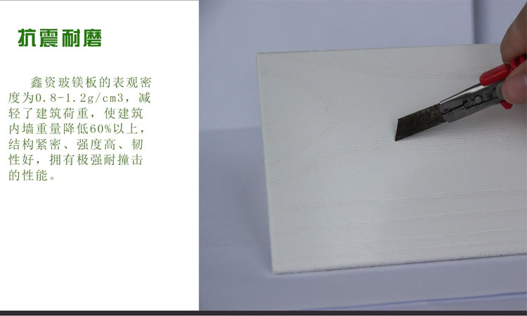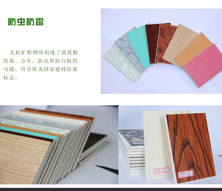 玻鎂防火板可用作墻板、吊頂板、防火板、防水板、包裝箱等,可替代木質膠合板做墻裙、門窗、板門板、家具等。也可根據需要表面涂調和漆、清水漆,并可加工成各種類型的板面。還可用于地下室、礦井等潮濕環境的工程,和多種保溫材料復合使用,制成復合保溫板材