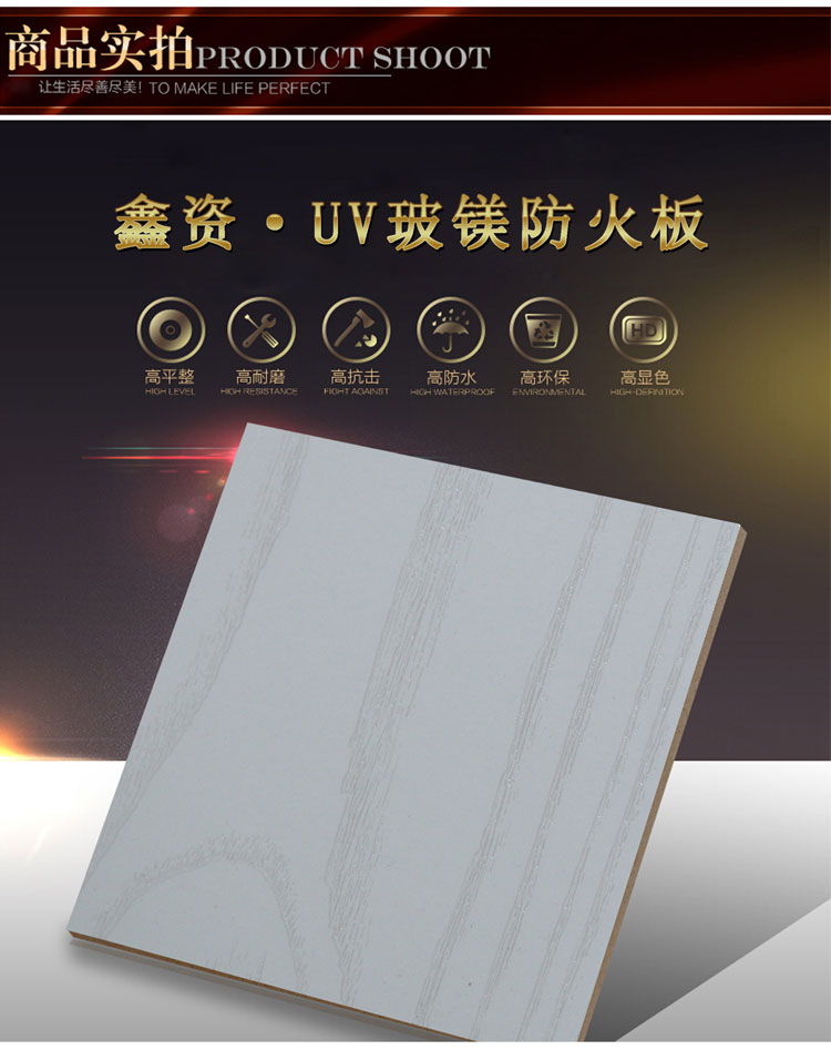 鑫資系列防火裝飾板,有木紋系列、仿制大理石紋系列、藝術系列等,產品適用于KTV、夜總會、酒店、賓館、會所、浴場等商業場所內墻裝飾。產品表面光滑平整,不宜褪色,環保健康,色彩豐滿誘人,不易劃傷,方便除塵,防水隔音,耐酸抗腐。