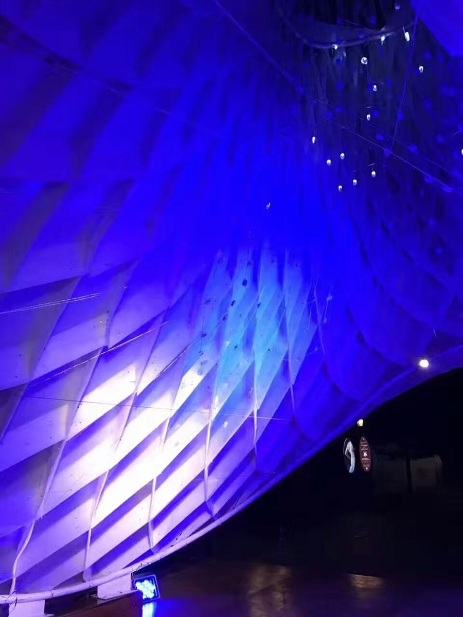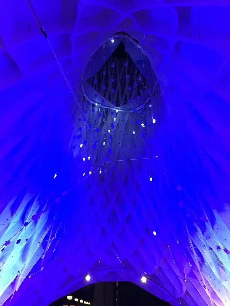 走進(jìn)共鳴燈光亭內(nèi),仰起頭,你會(huì)明白什么是設(shè)計(jì)師的純真的藝術(shù)家之心。制造出斑斕華彩的280盞LED燈,全部是優(yōu)威斯特裝飾材料特別定制手工打造的,一個(gè)個(gè)像小小的外星人,睜著童真的眼睛看地球,代表著純粹的夢(mèng)想。燈光亮起的時(shí)候,猶如梵高的星空,照亮了無(wú)限的夢(mèng)想。