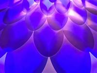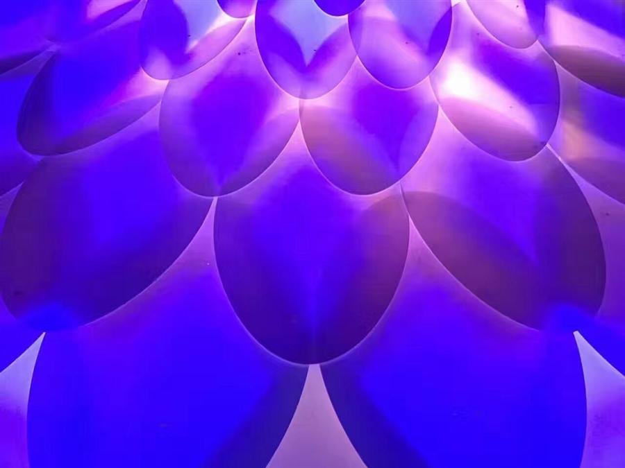 走進共鳴燈光亭內,仰起頭,你會明白什么是設計師的純真的藝術家之心。制造出斑斕華彩的280盞LED燈,全部是優威斯特裝飾材料特別定制手工打造的,一個個像小小的外星人,睜著童真的眼睛看地球,代表著純粹的夢想。燈光亮起的時候,猶如梵高的星空,照亮了無限的夢想。