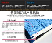 建誠金屬保溫板,規(guī)格:4000*383*16 長度可定制。金屬雕花板外層為金屬層,采用鍍鋁鋅鋼板(含55%鋁,43%鋅),表面為汽車噴漆,可長達30年不變色。夾層聚氨酯和冰箱保溫層同一材質(zhì),1cm聚氨酯相當(dāng)于普通磚塊的34.4cm的厚度,保溫性能絕佳。背面鋁箔防火性能優(yōu)秀,隔水性能很好。