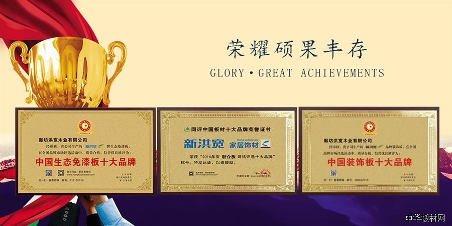 新洪寬堅持聚焦戰略,通過整合自身優勢資源,開始建設飾材連鎖體系。連鎖機構以“綠色環保”為己任,以“高品質、高標準”的產品為載體,從專業的裝飾貼面板生產向裝修選材一站式服務進軍!產品得到了廣大經銷商和消費者的青睞,在業內始終保持良好的口碑,被中國裝飾材料協會列入《綠色品牌推薦》名錄。公司目前已全面通過了ISO9001國際質量管理體系認證、ISO14001國際環境管理體系認證和中國環境標志產品認證,同時獲得河北省著名商標、河北省名牌產品等眾多殊榮。??