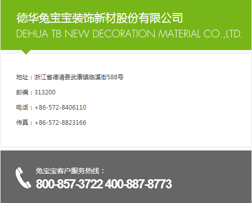 德華兔寶寶裝飾新材股份有限公司創建于1993年,經過二十年的不懈努力和創新發展,公司已經從單一的裝飾貼面板生產型企業發展成為我國具有較大影響力的室內裝飾材料綜合服務商,產品銷售網絡覆蓋全國各地,并銷往美洲、歐洲、澳洲、中東等全球各地。公司股票于2005年5月10日在深圳證券交易所上市交易(股票簡稱:兔寶寶,股票代碼:002043)。